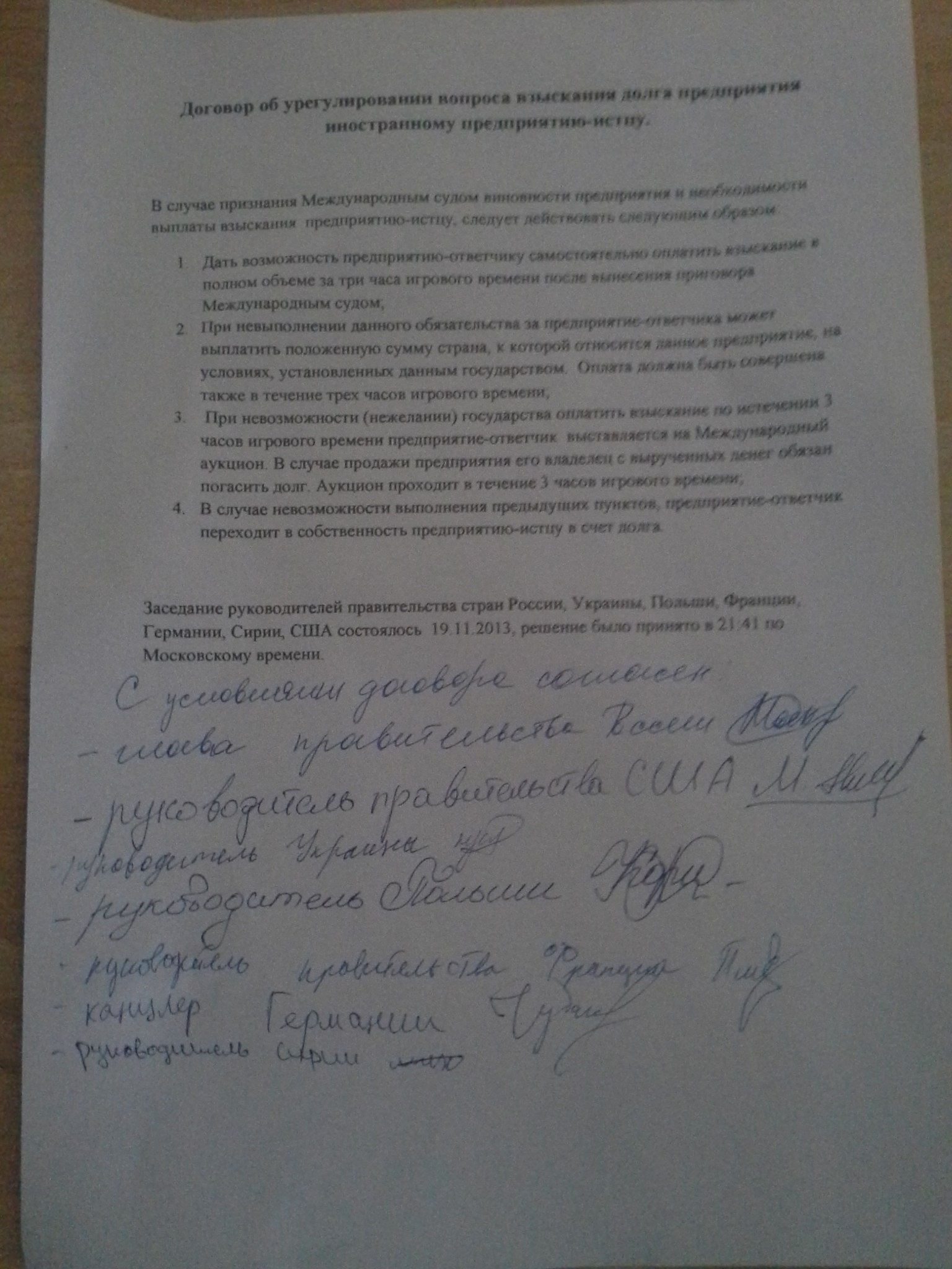 Договор об урегулировании вопроа взыскания долга предприятия иностранному предприятию-истцу.